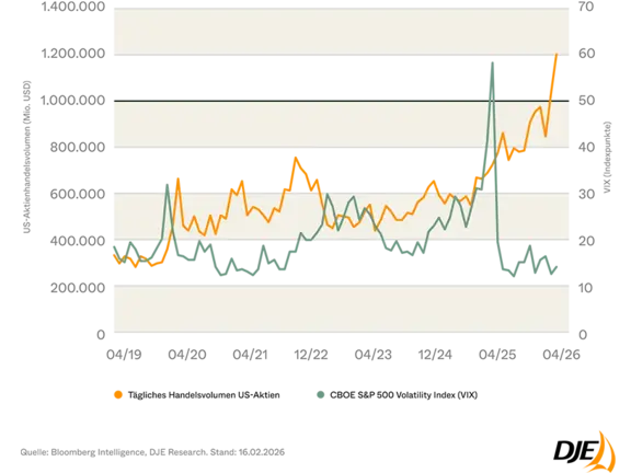 Das tägliche Handelsvolumen an den US-Aktienmärkten hat erstmals die Marke von 1 Billion US-Dollar überschritten. Ein Blick auf die Hintergründe zeigt, welche strukturellen Entwicklungen diese Dynamik antreiben.