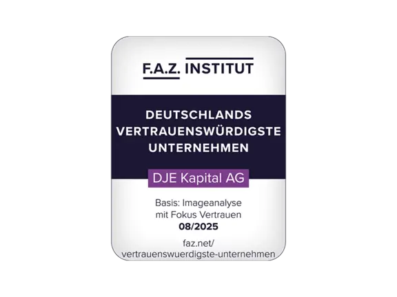 Die DJE Kapital AG wurde vom F.A.Z.-Institut in Zusammenarbeit mit ServiceValue als eines der vertrauenswürdigsten Unternehmen Deutschlands ausgezeichnet.