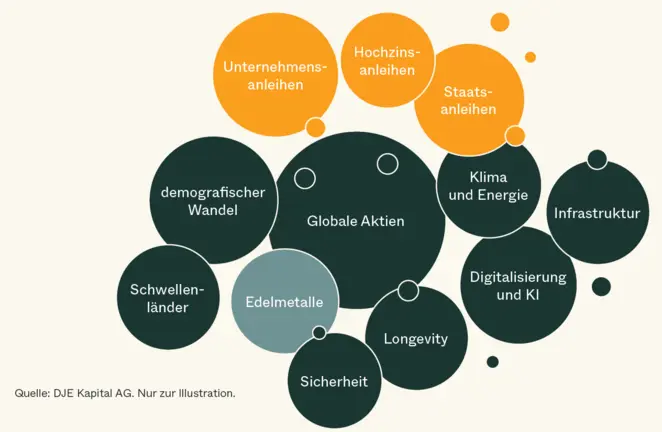 Eine weitere Möglichkeit professioneller Geldanlage sind Multiasset- bzw. Mischfonds. Diese Fonds investieren flexibel in verschiedene Anlageklassen wie Aktien, Anleihen oder Liquidität und werden aktiv gesteuert. Ziel ist es, Chancen an den Kapitalmärkten zu nutzen und Risiken gezielt zu steuern – innerhalb eines klar definierten Fondsrahmens.