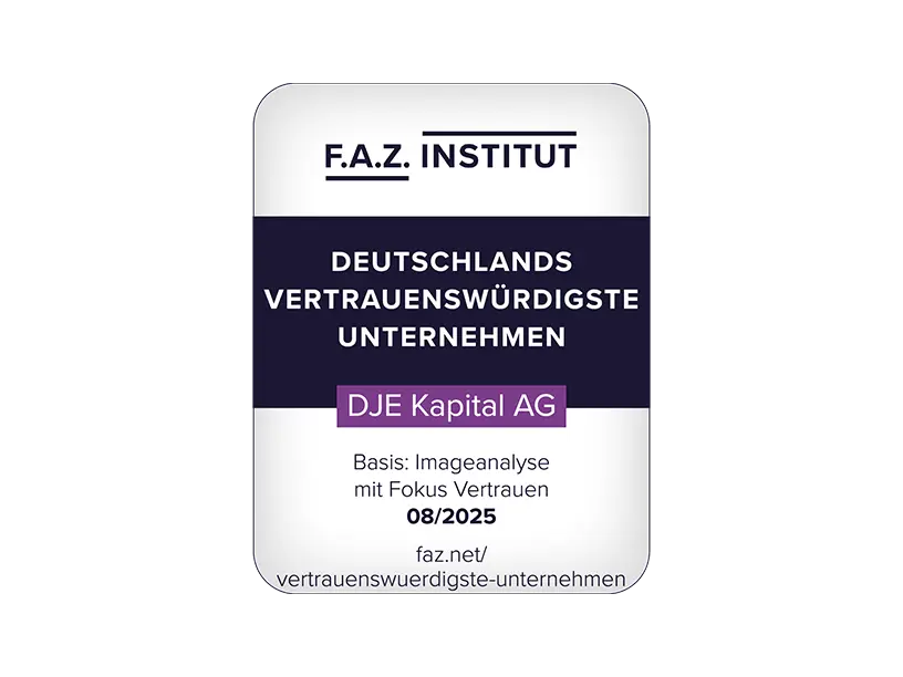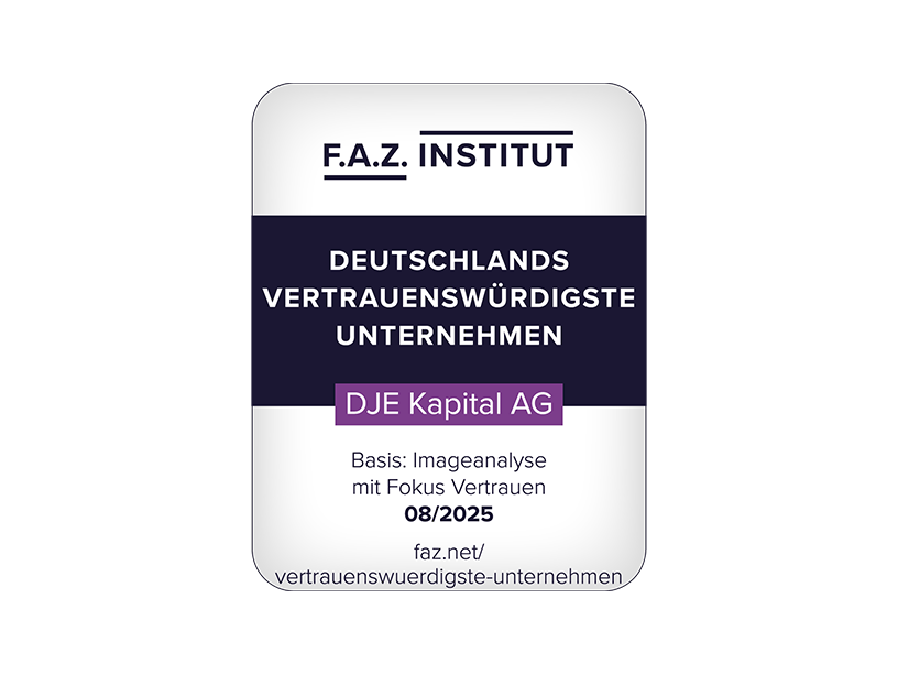 Die DJE Kapital AG wurde vom F.A.Z.-Institut in Zusammenarbeit mit ServiceValue als eines der vertrauenswürdigsten Unternehmen Deutschlands ausgezeichnet.