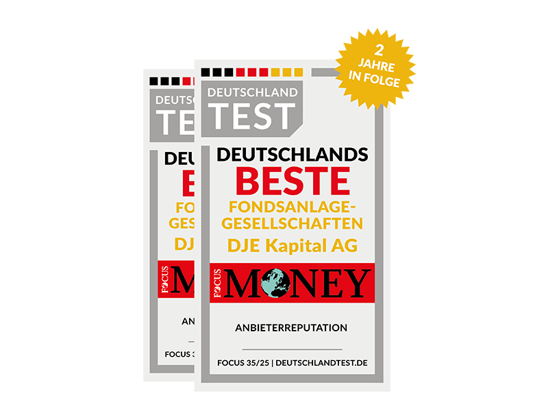 Zum zweiten Mal in Folge wurde die DJE Kapital AG im Rahmen des DEUTSCHLAND TEST von Focus Money als eine von Deutschlands besten Fondsgesellschaften ausgezeichnet.