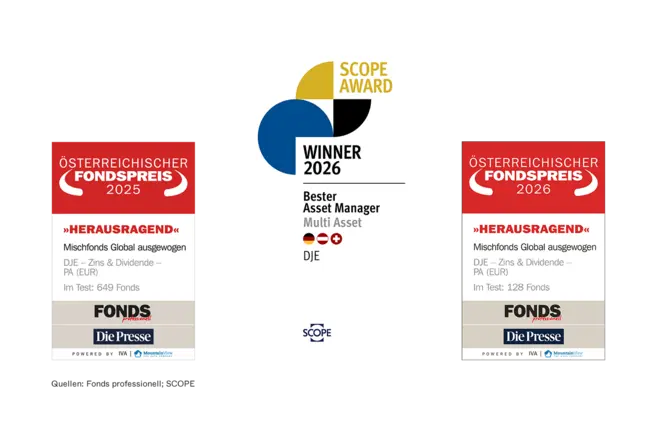 Unsere Fonds werden regelmäßig durch unabhängige Institutionen prämiert – unter anderem mit dem Österreichischen Fondspreis 2026 für den DJE – Zins & Dividende.